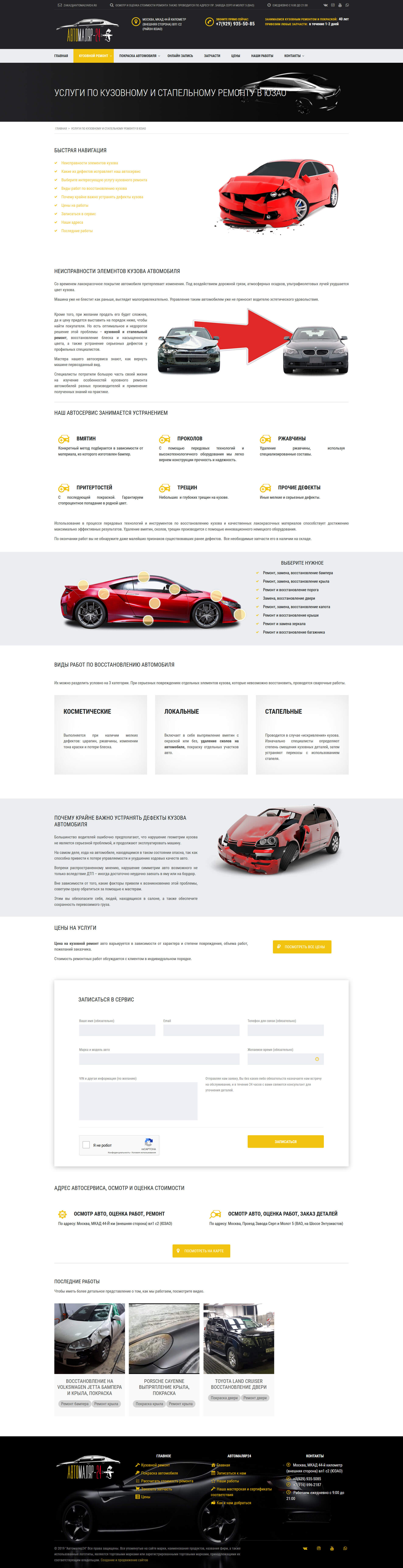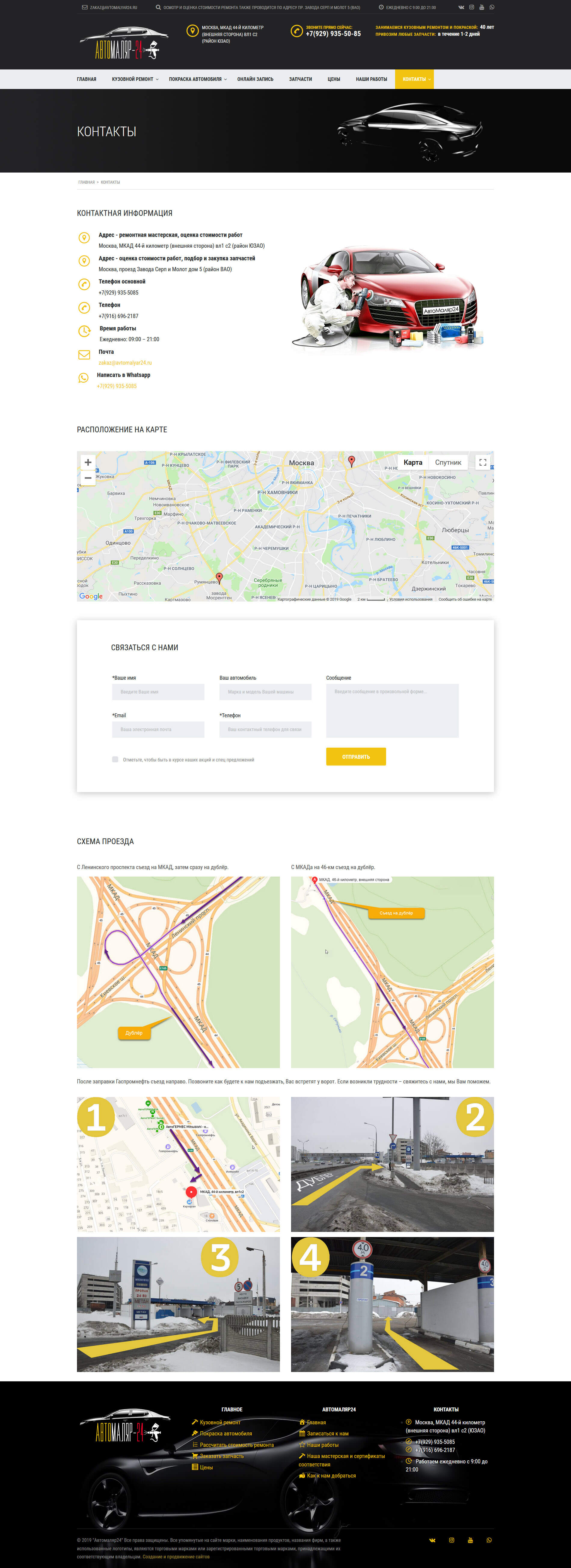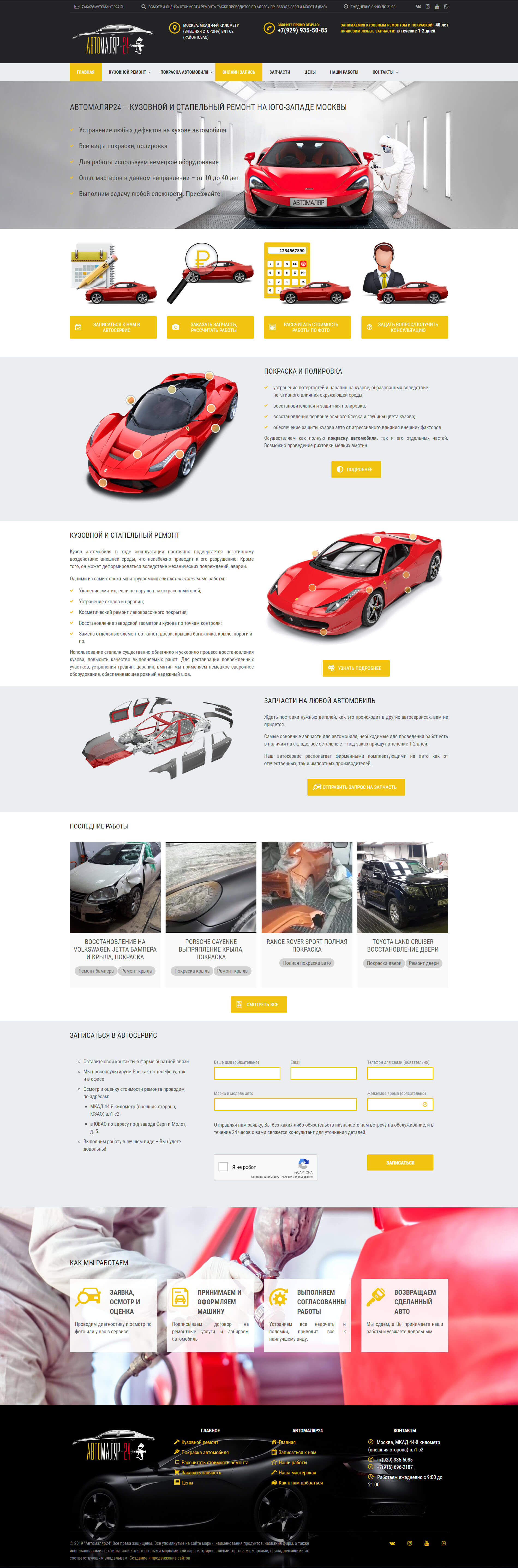 - Форма обратного звонка, заказа рассчета стоимости ремонта