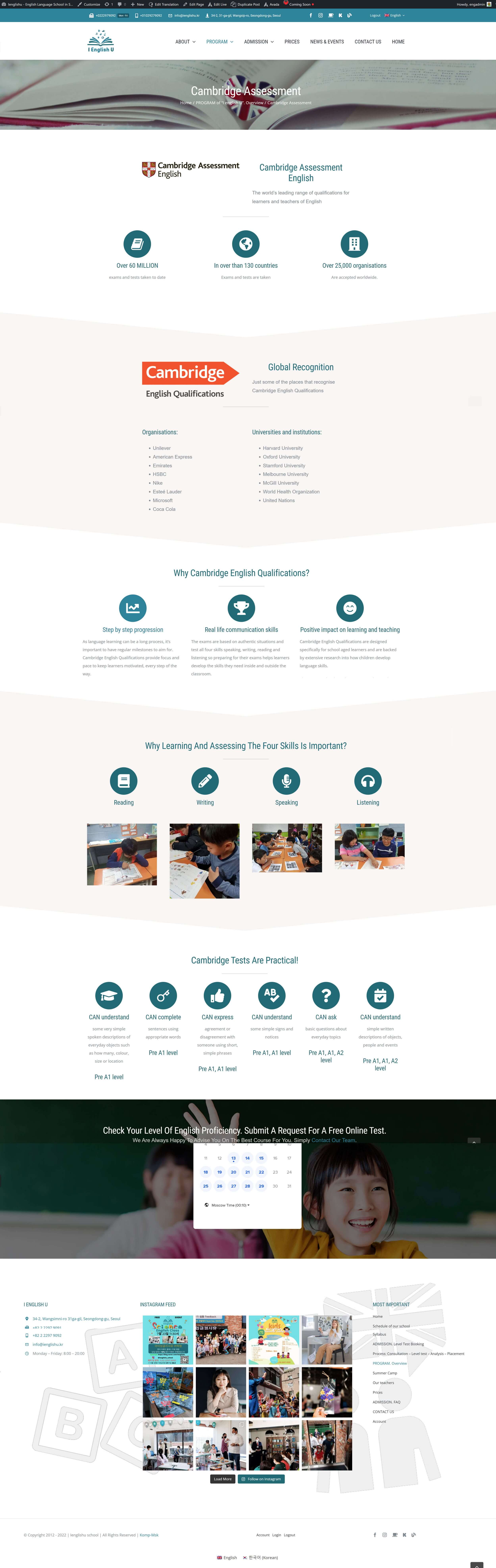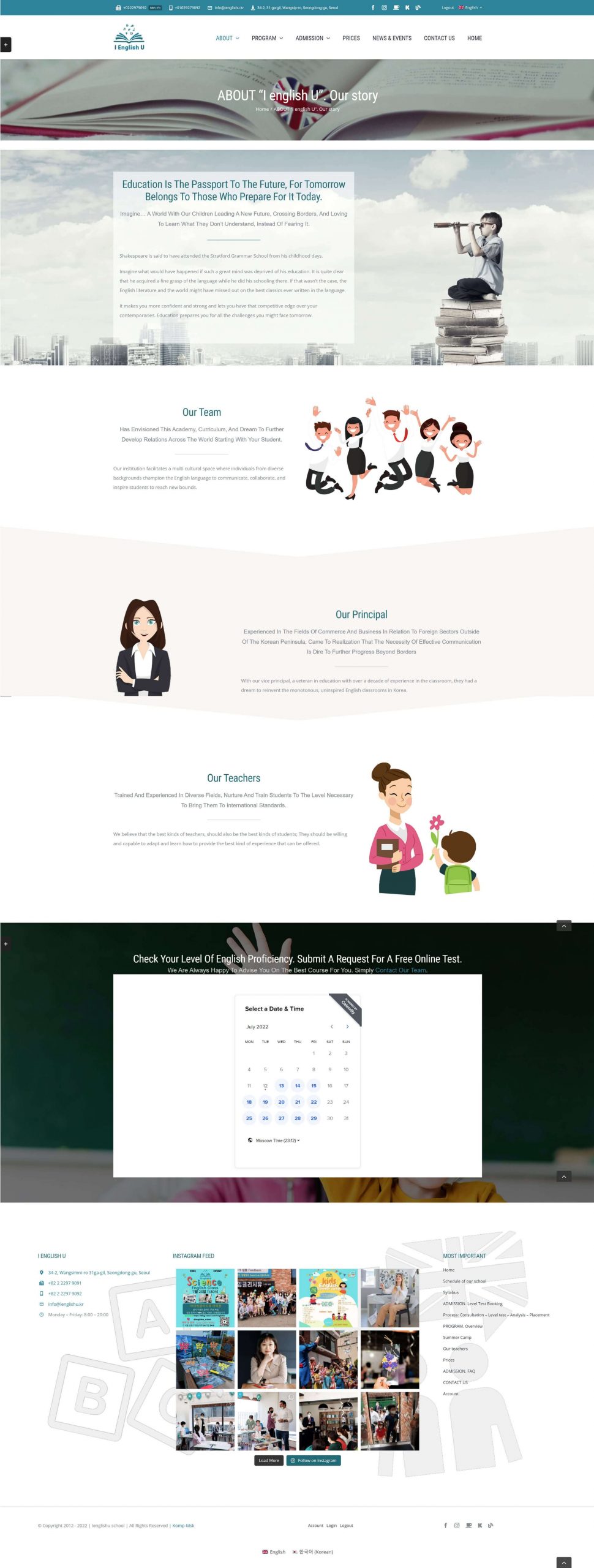 - Сайт на английском и корейском языках с переключателем языка, каждая страница с редактируемым переводом